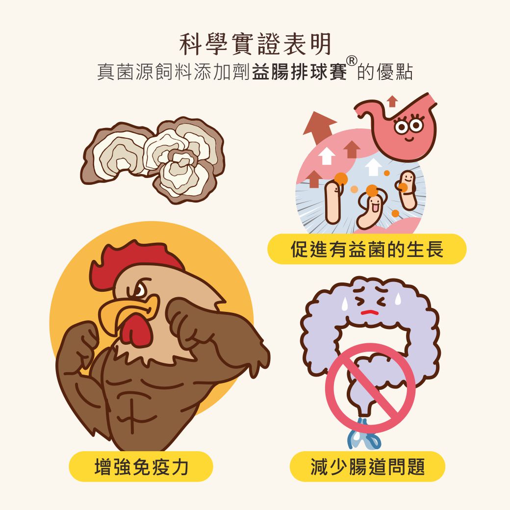 『益腸排球賽』的主要成分為聚氨基葡糖,俗稱殼聚糖或甲殼素,可透過抑制有害菌,