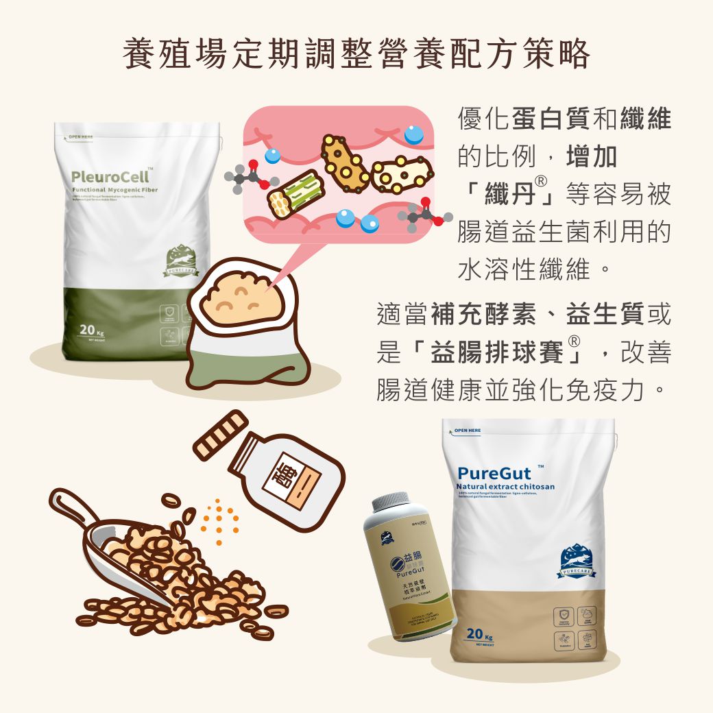 ⑴減少或避免使用容易導致水便的飼料成分,增加容易消化的原料,優化蛋白質和纖維的比例,減少腸道負擔。