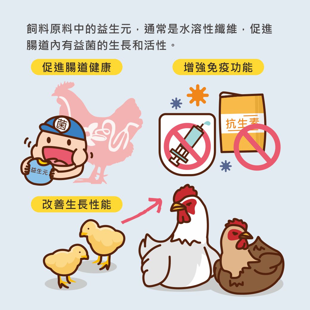 益生元(Prebiotics)是飼料原料中可能會有的成分,通常是指纖維類,特別是水溶性纖維,含有比較小分子量的聚糖,像是低聚糖類,如菊粉、低聚果糖等,它們能選擇性地促進腸道內有益菌(如雙歧桿菌和乳酸桿菌)的生長和活性。對於家禽和家畜,益生元有多種生理意義,具體如下: