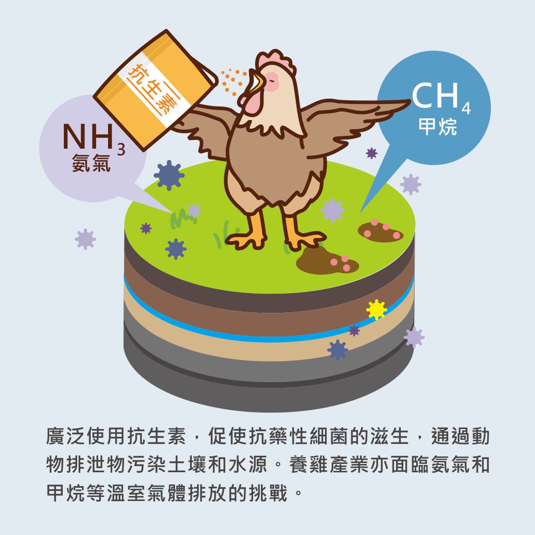養雞產業尤其面臨氨氣和甲烷等溫室氣體排放的挑戰,加上養殖廢水及雞糞、墊料等社會的負面觀感問題,進一步惡化續繼養殖業的可持續性。