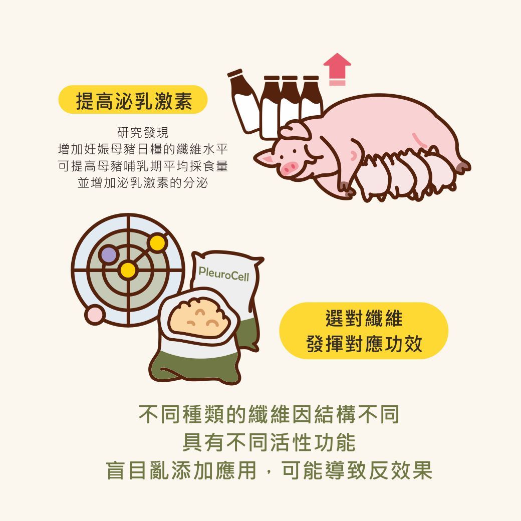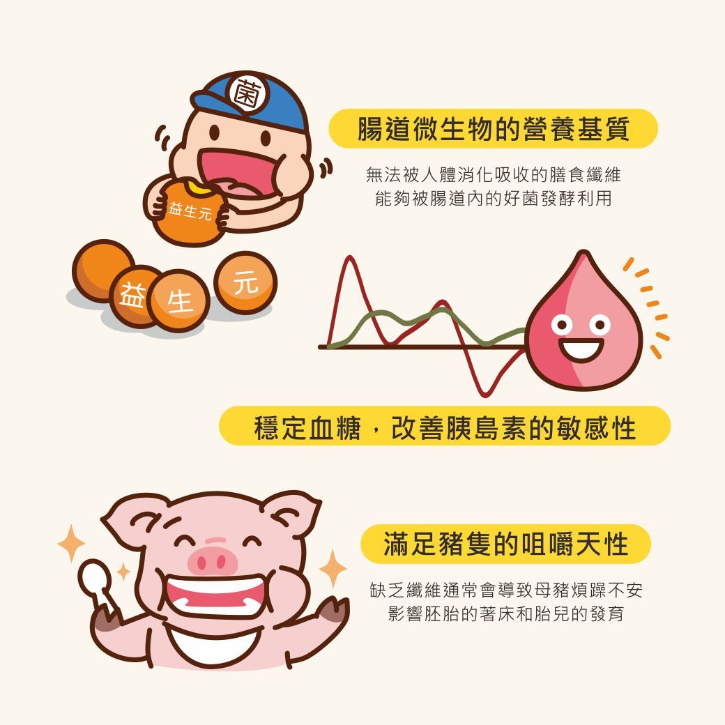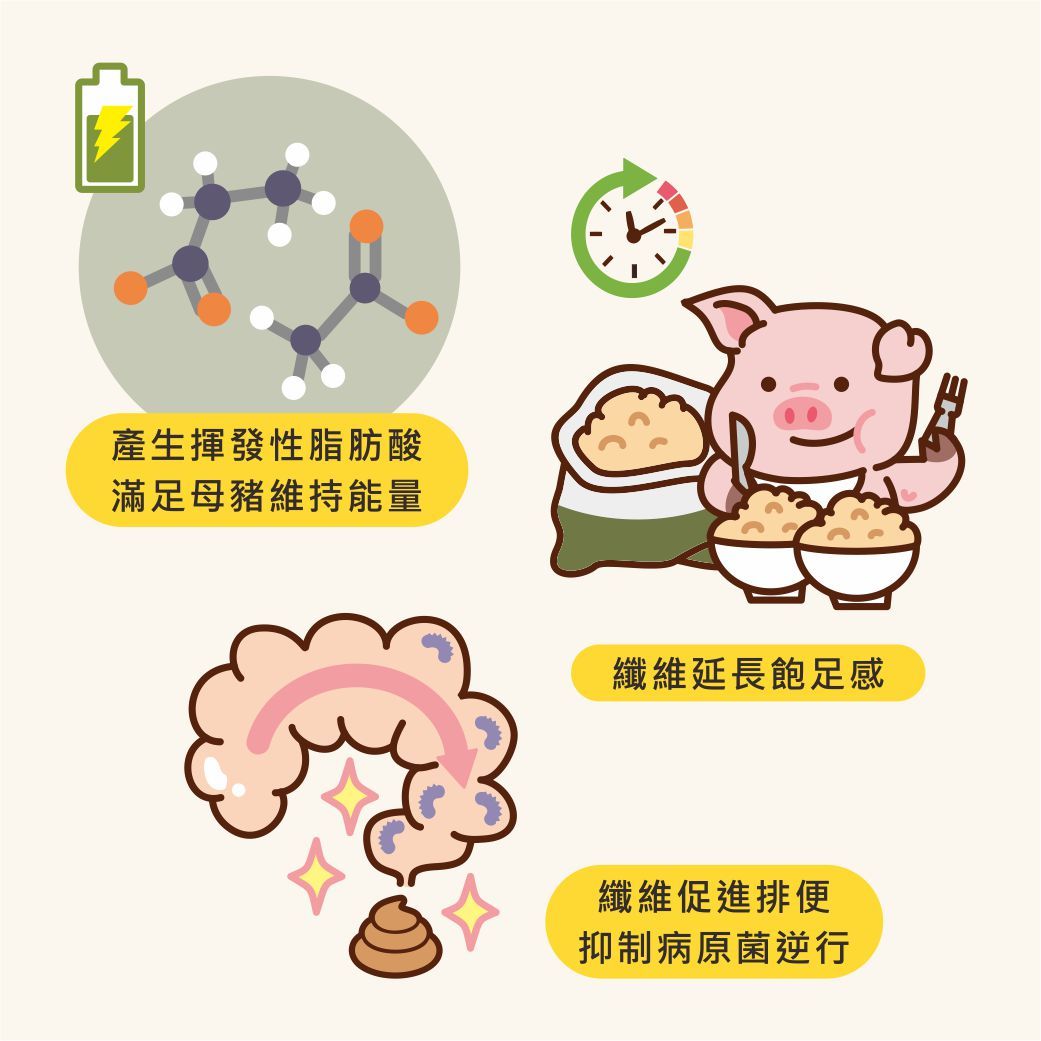 纖維能增強或延長飽腹感,特別是在限制飼養的情況下,有助於減輕母豬的延緩母豬的饑餓。