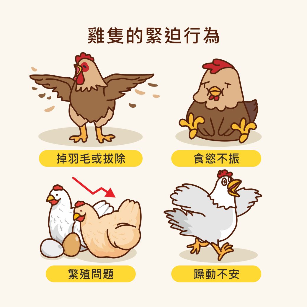 雞在經歷壓力時可能會有以下反應: