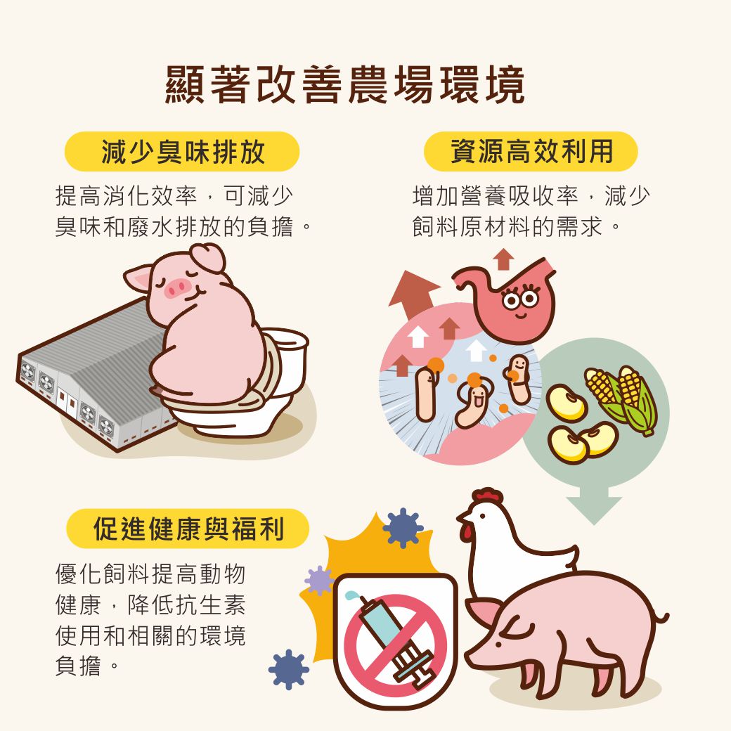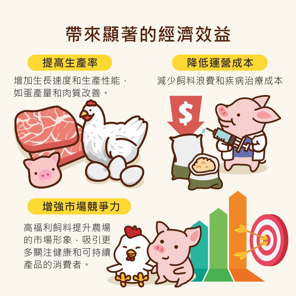 進行飼料營養的改進時,不僅可以顯著改善農場環境,還能帶來顯著的經濟效益。以下分別說明: