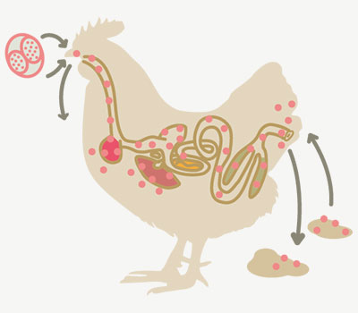 雞隻體內球蟲受精卵發育成新的卵囊,